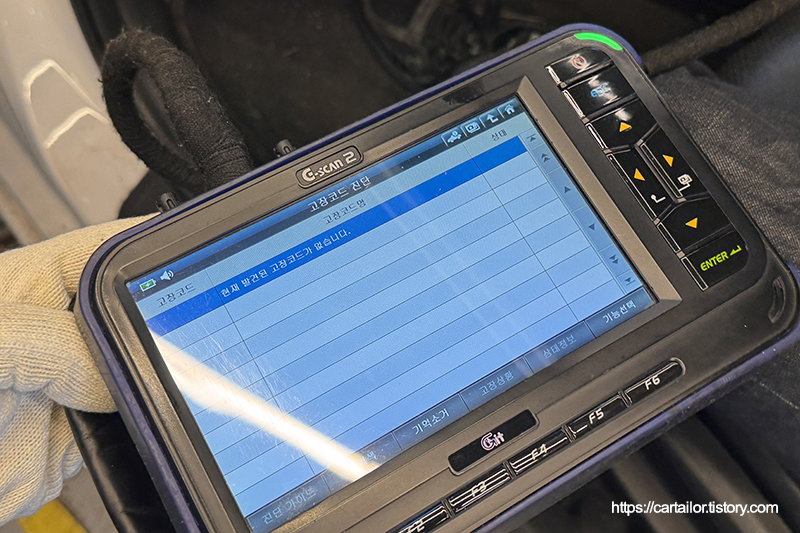 차량 구입 후, 유지 보수 목적으로 자동 변속기 오일 교환을 위해 입고된 아반떼AD 1.6 GDI 차량입니다.