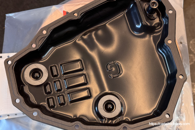 전용 세정제를 이용해 오일팬을 클리닝한 후, 신품 가스켓과 마그넷을 부착합니다.