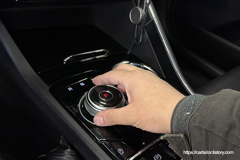 레벨링 작업을 감안한 용량의 신유를 주입 후, 시동을 걸어 변속을 진행합니다. P단에 위치 후 레벨링 작업을 시작합니다.