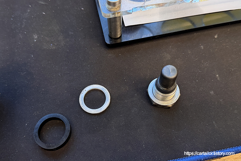 세척이 끝난 플러그에 신품 와셔를 걸어준 뒤, 레벨링플러그 오링도 함께 신품으로 준비합니다.