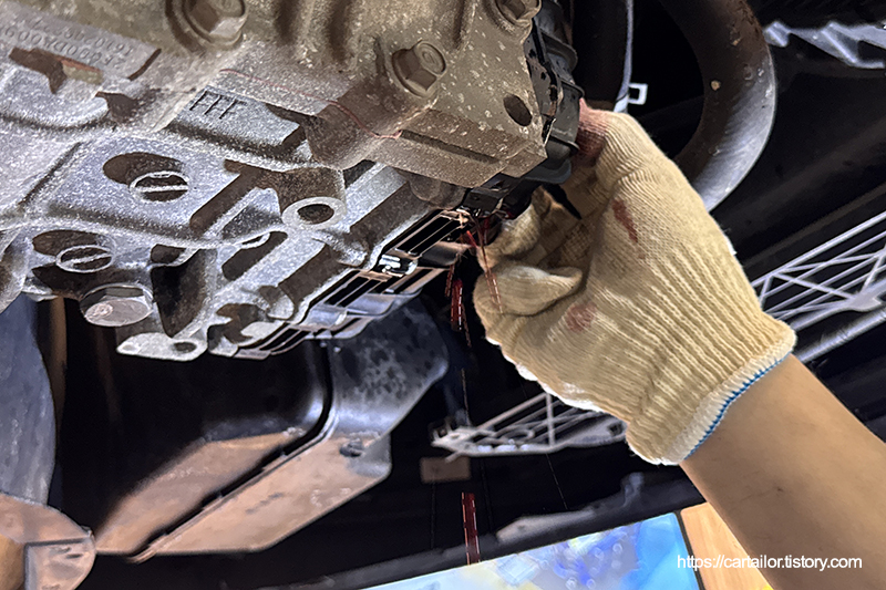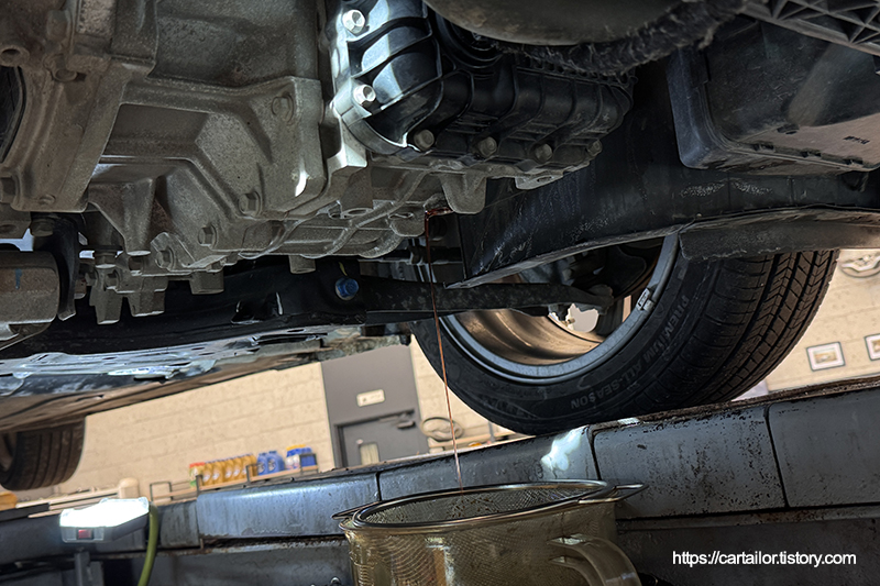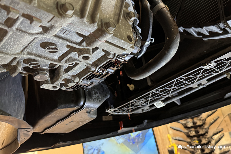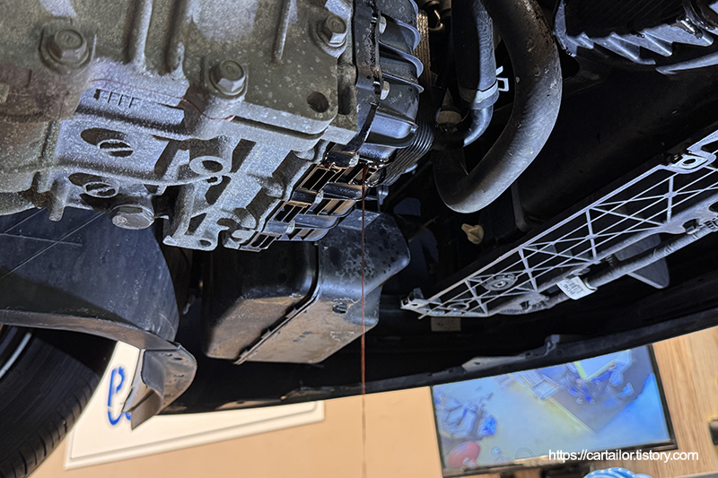 시운전을 통해 변속감과 직결감을 확인 후, 다시 차량을 리프팅해 작업 부위들을 체크합니다. 모두 유분기없이 깨끗합니다.