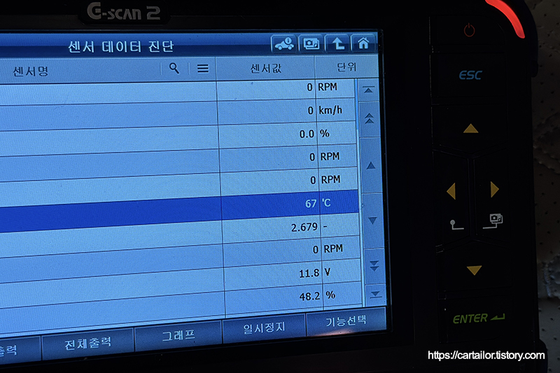 전용 진단기를 이용해 작업과 관련된 폴트 여부를 체크합니다. 깨끗합니다.