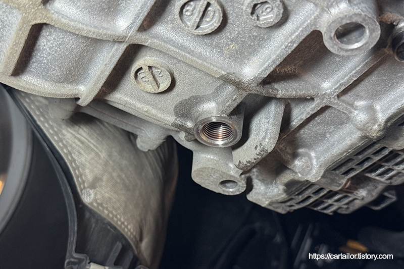 정확한 레벨링 (Levelling) 시공 별도의 오일 게이지가 없는 최근 연식의 대다수 차종의 경우 트랜스미션 바디 측면의 레벨링 볼트를 통해 특정 온도 범위에 도달했을 때 정확한 양을 맞추도록 설