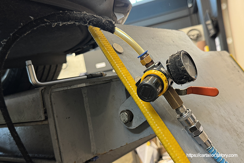 레벨링 작업을 감안한 용량의 신유를 주입 후, 변속을 통해 신유 순환을 진행합니다. P단에 위치 후 레벨링 작업을 시작합니다.