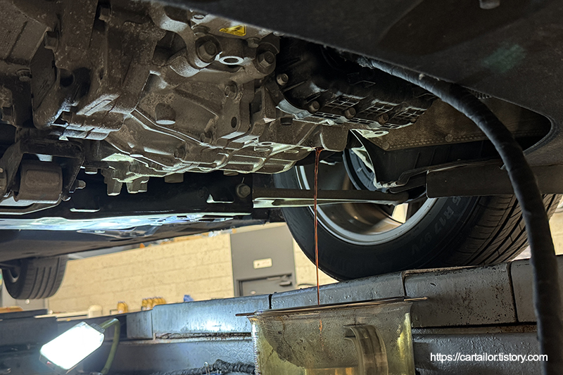 언더커버를 탈거 후, 기존 미션오일을 배출합니다.
