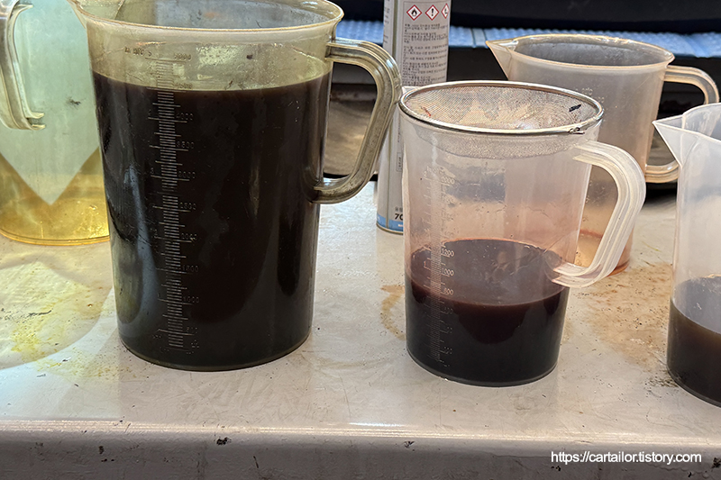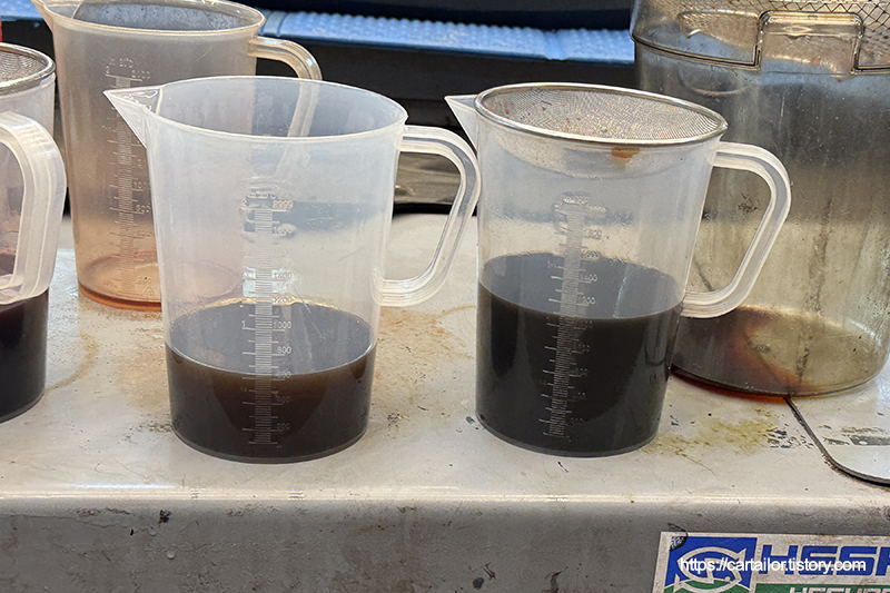 배출된 전륜과 후륜 디퍼런셜오일입니다.