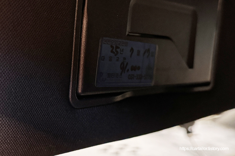다음 엔진오일교환주기가 기재된 스티커를 선바이저에 부착하면 작업이 종료됩니다.