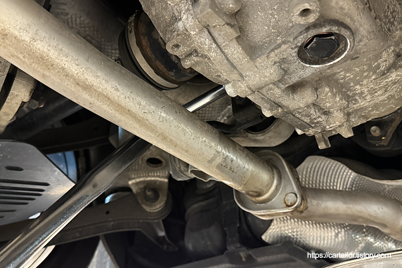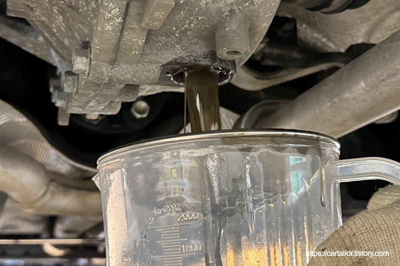 후륜 디퍼런셜오일을 배출합니다. 교체 이력이 있어 보입니다.