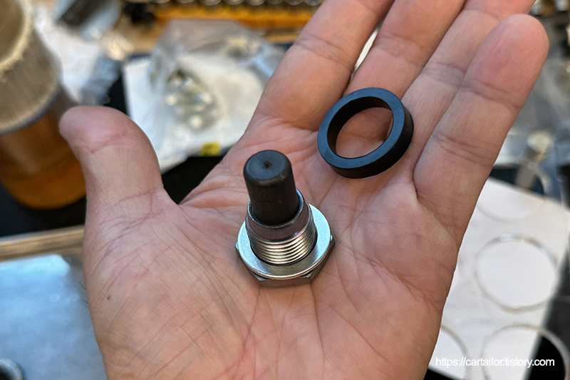 상태가 좋지 않은 드레인플러그를 비롯해 와셔, 레벨링플러그 모두 신품으로 교체합니다.
