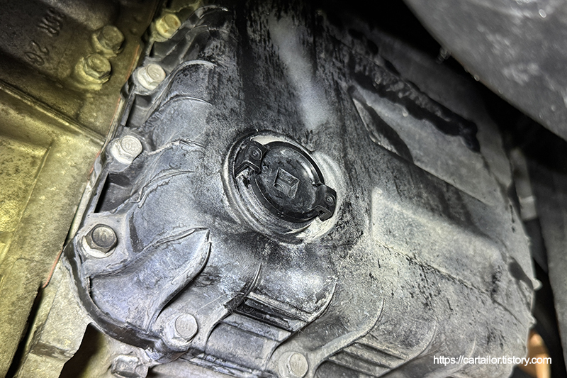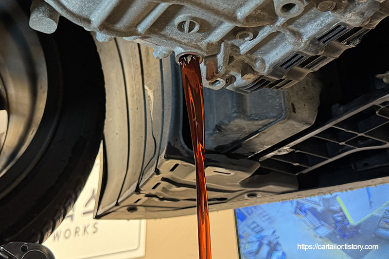 언더커버를 탈거 후, 기존 미션오일을 배출합니다.