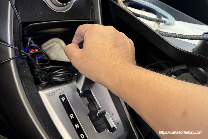 레벨링 작업을 감안한 용량의 신유를 주입 후, 시동을 걸어 변속을 진행합니다. P단에 위치 후 레벨링 작업을 시작합니다.