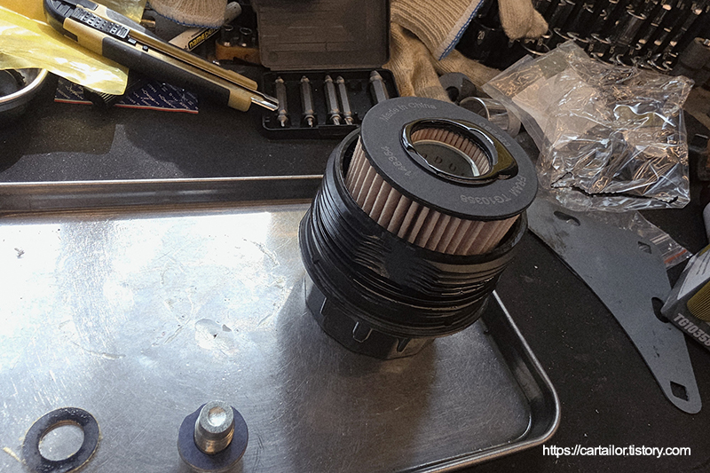 서비스커버를 탈거 후, 오일필터를 제거합니다.