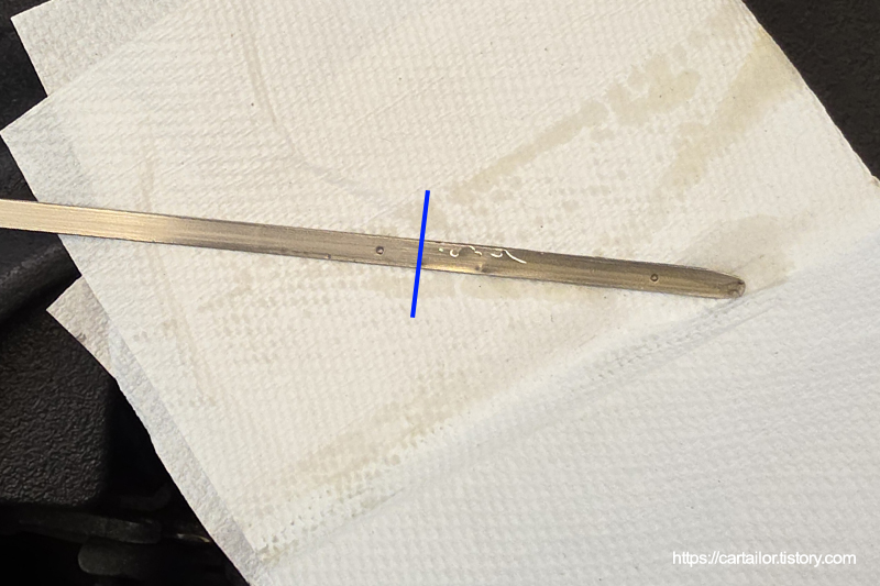웜업 상태에서 시동을 끄고 수분 후 레벨을 확인합니다. 정량 잘 충진되었습니다.