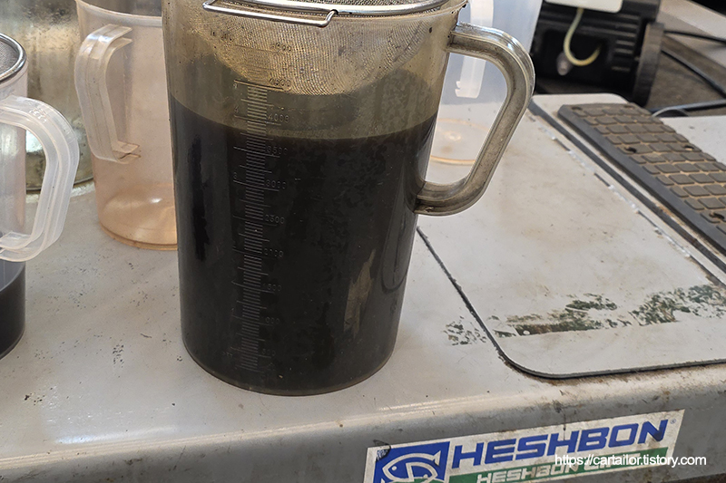 배출된 용량을 토대로 계산된 용량의 신유를 주입 후, 엔진을 구동해 온도를 올려줍니다.