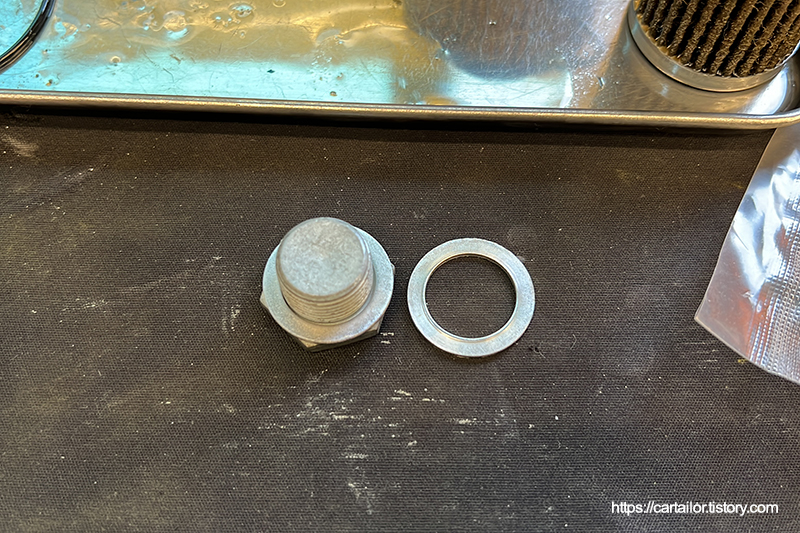 레벨링플러그 와셔를 신품으로 교환합니다.