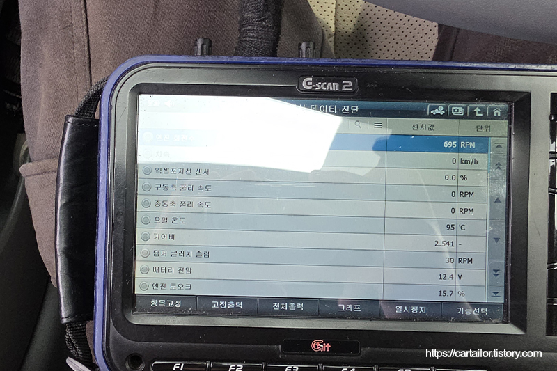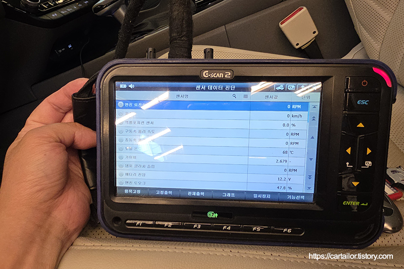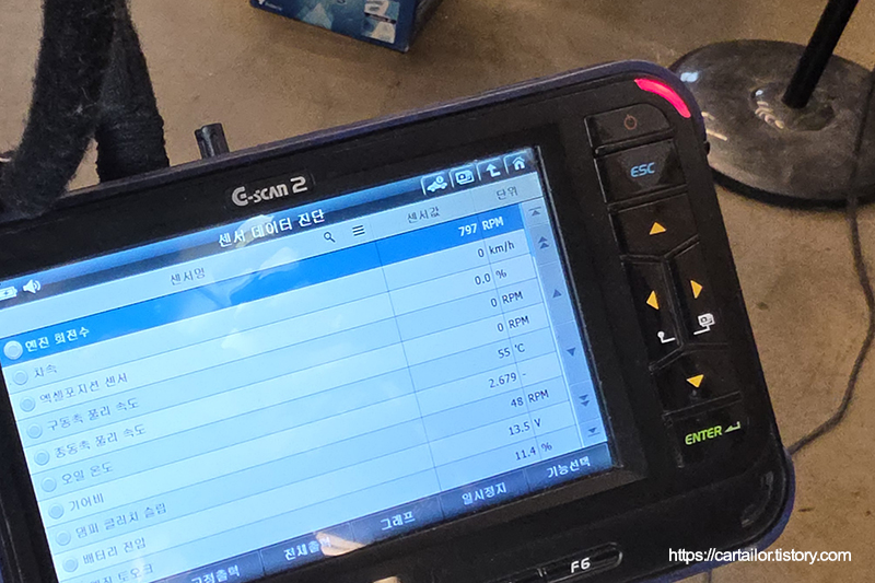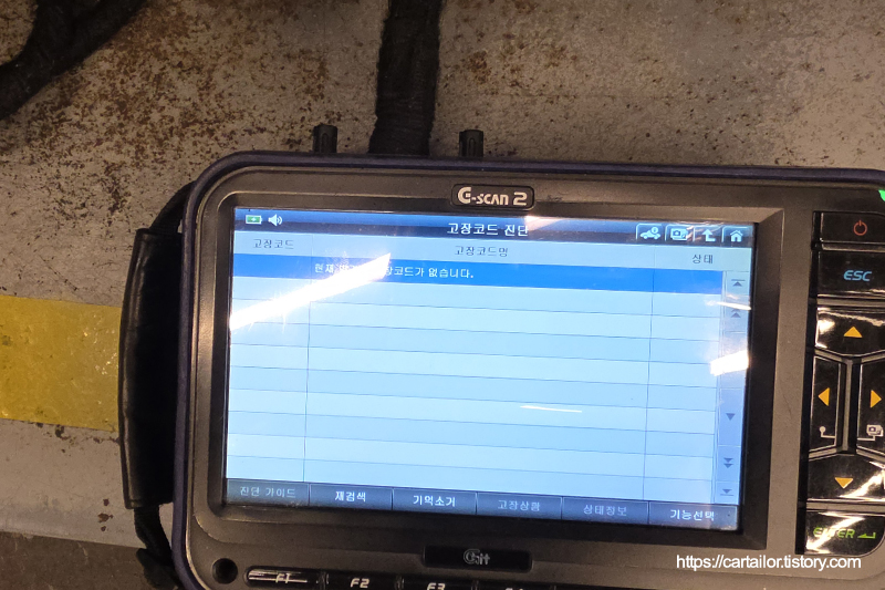 전용 진단기를 이용해 작업과 관련된 폴트 여부를 체크합니다. 깨끗합니다.