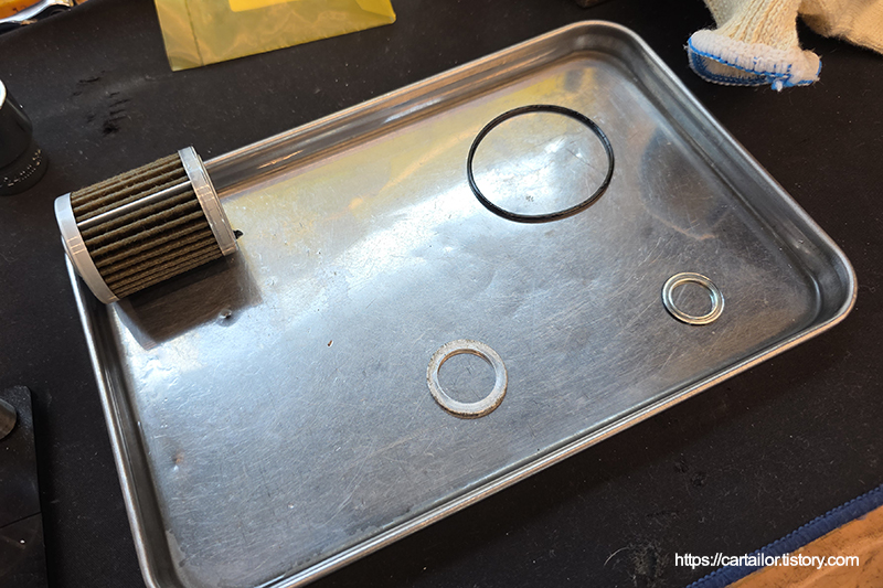 신품 압력필터와 필터 하우징 오링입니다. 이번 작업은 압력 필터 교체까지만 진행하며, 오일팬 내부 오일필터 어셈블리 교체 작업 선택도 가능하니 니즈에 맞게 진행하시면 되겠습니다.