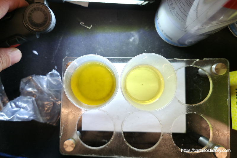 좌측은 기존 브레이크액, 우측은 신유입니다.