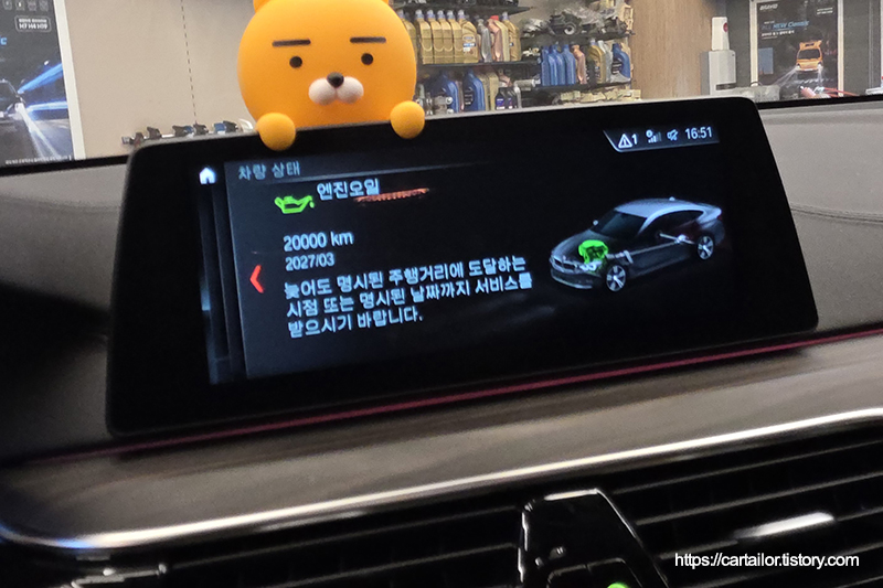 엔진오일 수명 리셋과 함께 다음 엔진오일교환주기를 기재한 스티커를 선바이저에 부착합니다.