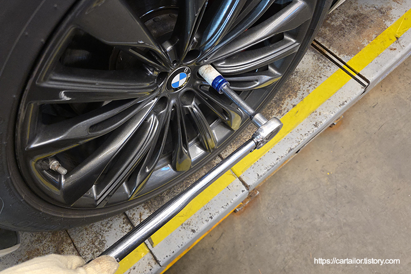 작업이 끝난 휠들을 장착 후, 모든 고정 너트들을 토크렌치를 이용해 규정 토크로 체결합니다. 시운전을 다녀온 뒤, 한 번 더 조임 토크를 확인합니다.