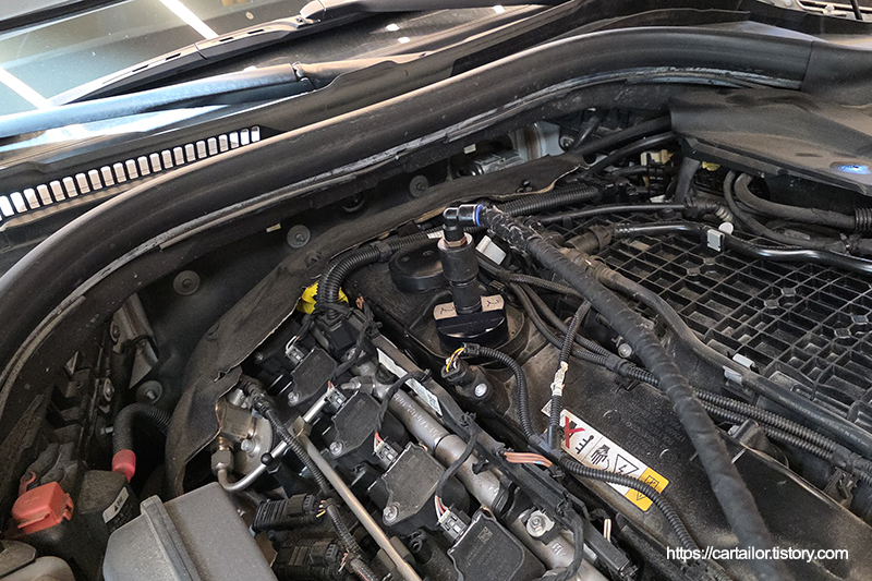 마일드한 잔유배출을 도와 줄 에어 어답터 삽입 후 차량을 안전하게 올려 줍니다.