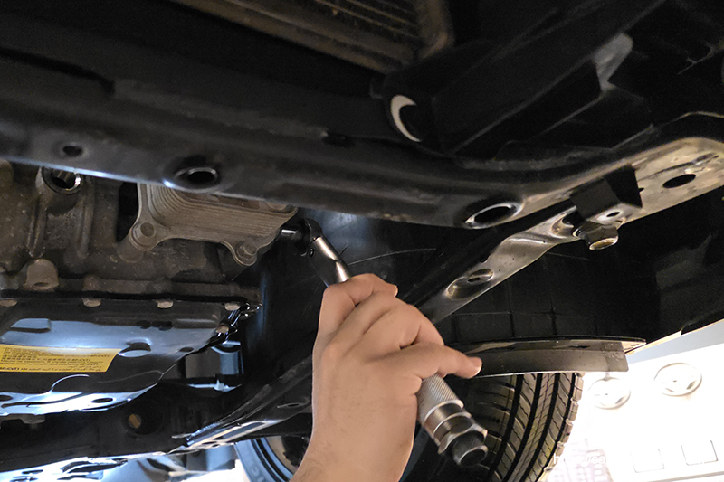 신품 IVTF필터를 장착 후, 신품 고정 볼트를 손으로만 돌려 가고정합니다. 필터 위치 조정이 끝났으면 토크렌치를 이용해 규정 토크로 체결합니다.
