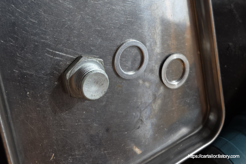 레벨링플러그 와셔를 신품으로 교환합니다.