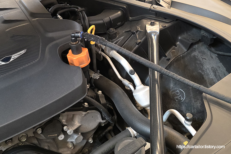 신유를 주입 후, 시동을 걸어 오일 순환 그리고 온도를 올리는 시간을 갖습니다.