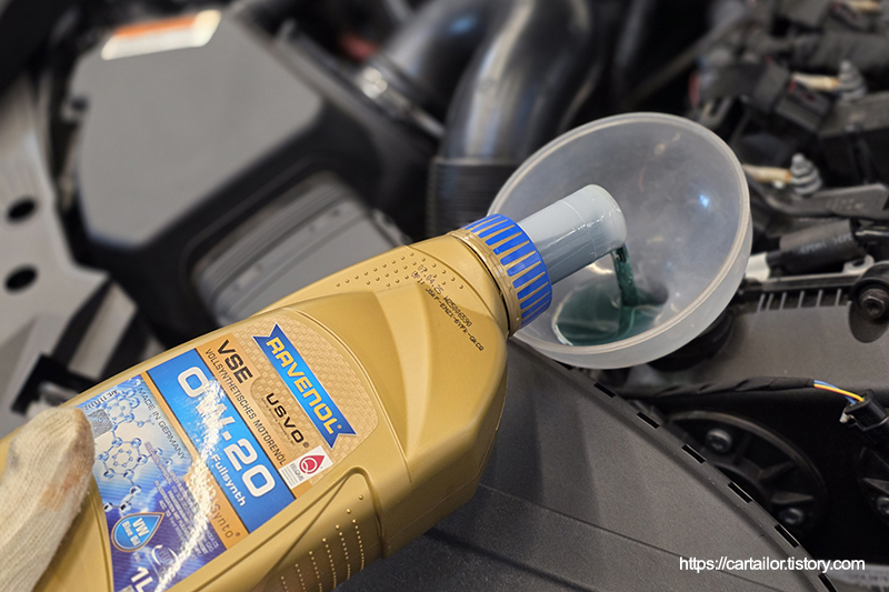 신유를 주입 후, 시동을 걸어 오일 순환 그리고 온도를 올리는 시간을 갖습니다.