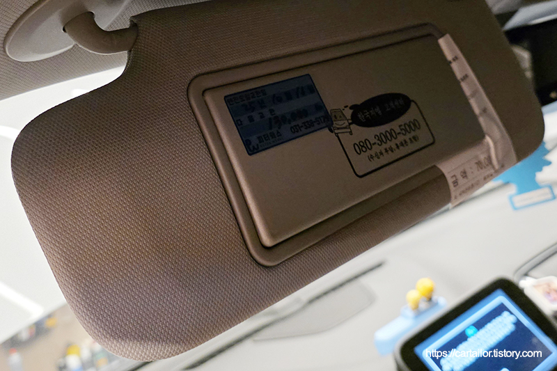 엔진오일 수명 리셋 및 다음 교환주기를 기재한 스티커를 선바이저에 부착 후 출고합니다.