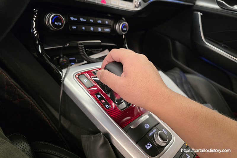 차량 인수 후, 교체 이력을 알 수없는 변속기 오일 및 디퍼런셜 오일 교환을 위해 입고된 스팅어 3.3T-GDI 후륜 모델입니다.