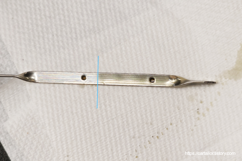 열간 상태에서 시동을 끄고 수분 뒤, 오일 레벨을 체크합니다. 정량 주입되었습니다.