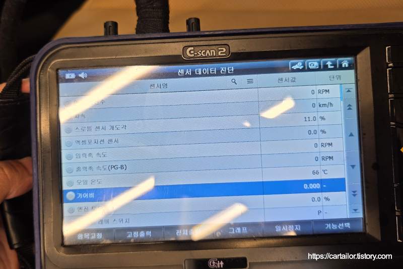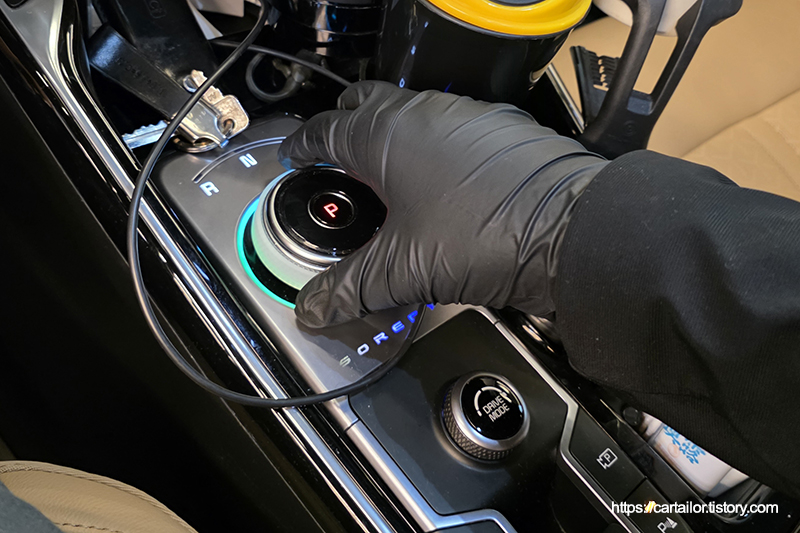 레벨링 작업을 감안한 용량의 신유를 주입 후, 시동을 걸어 변속 시퀀스를 진행합니다. P단에 위치 후 레벨링 작업을 시작합니다.