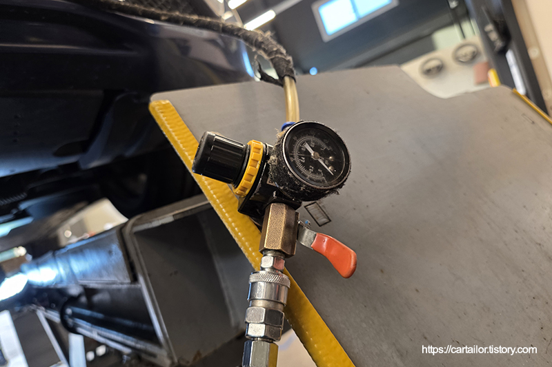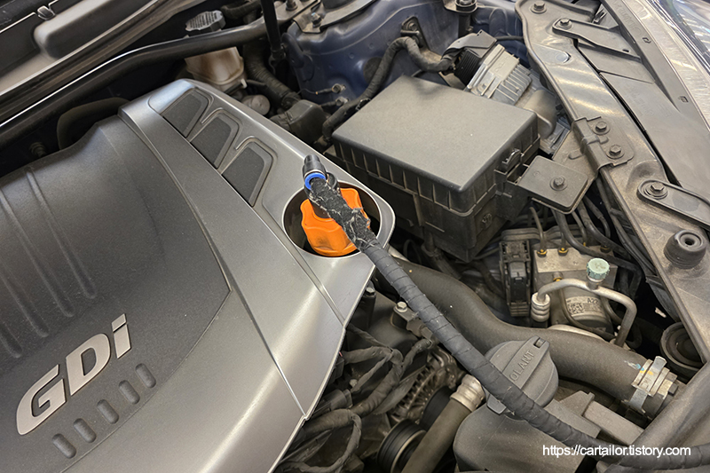 신유를 주입 후, 시동을 걸어 오일 순환 그리고 온도를 올리는 시간을 갖습니다.