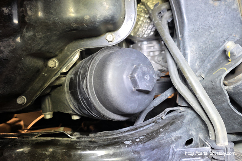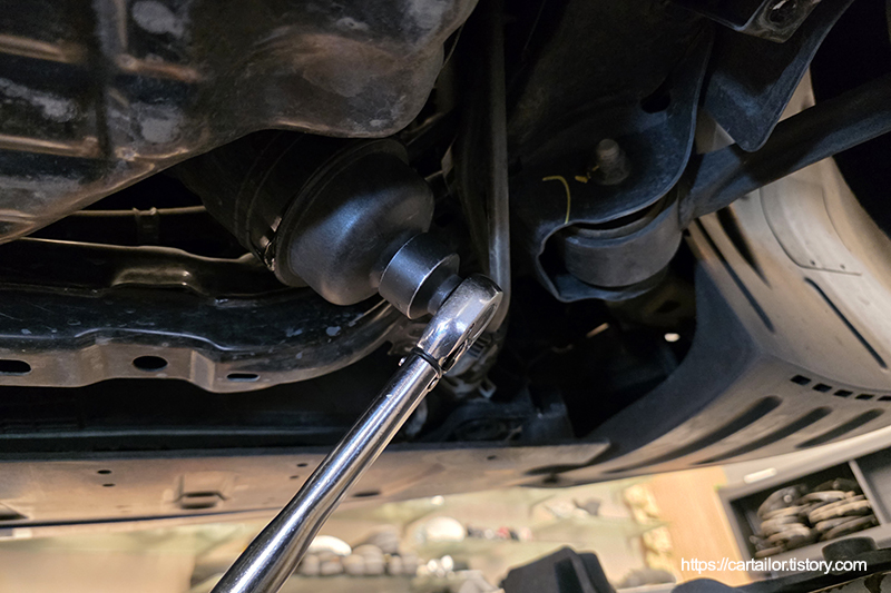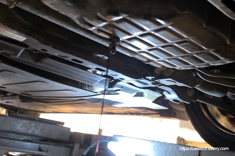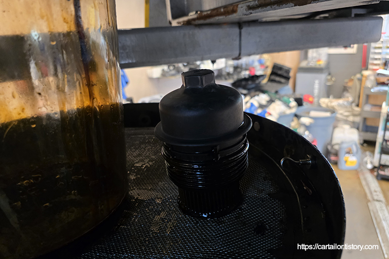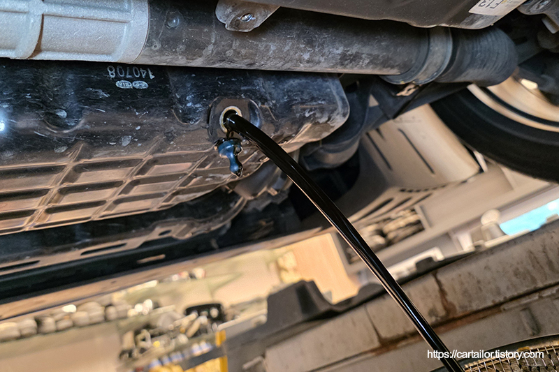 언더커버를 탈거 후, 오일필터와 엔진오일을 제거합니다.