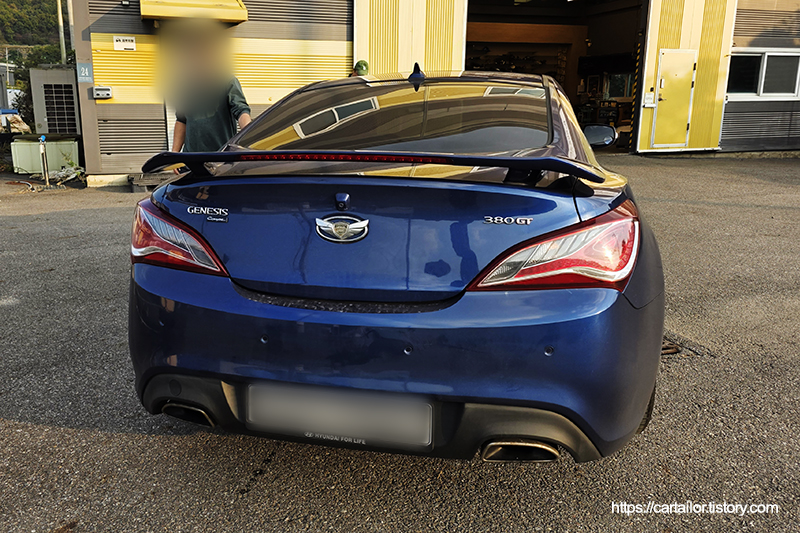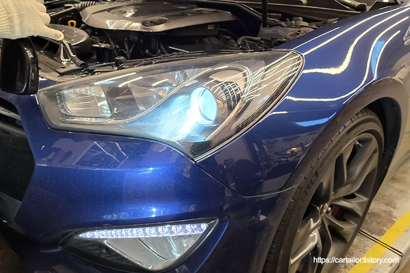 엔진오일교환 시기가 도래되어 입고된 더 뉴 제네시스 쿠페(BK) 3.8 GDI 모델입니다.