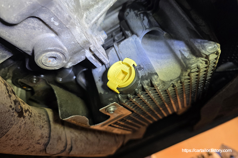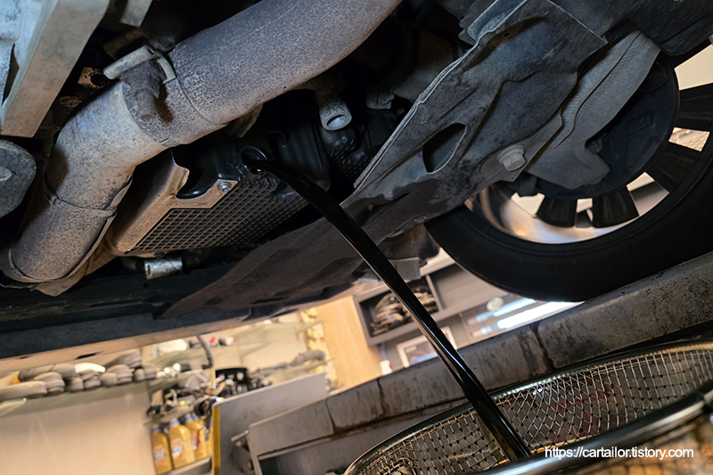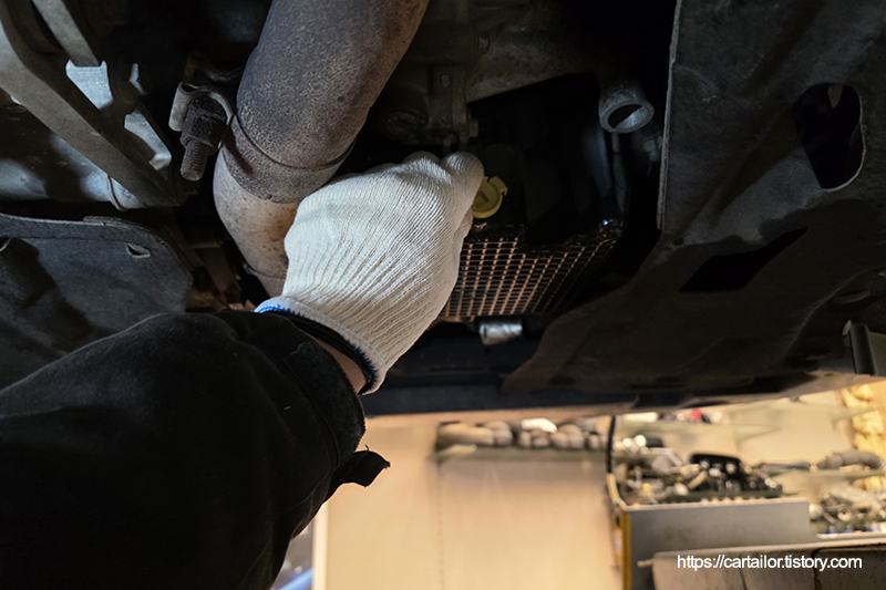 드레인플러그를 제거해 기존 사용유를 배출합니다.
