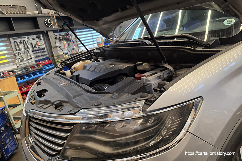 엔진오일교환 시기가 도래되어 입고된 링컨 MKX 2.7 터보 모델입니다. 링컨은 포드의 럭셔리 브랜드로, 우리나라로 치면 현대와 제네시스, 일본은 토요타와 렉서스와 같은 파생 브랜드입니다. 포드의 경우 자동차의 대량생산을 최초로 시작한 메이커인 만큼 오랬동안 차를 만들어 왔고 과거 재규어나 랜드로버와 같은 럭셔리 브랜드를 상하에 둔 이력도 있기 때문에 고급차를 만드는 노하우가 축척된 회사입니다. 링컨의 경우 차량의 스포츠성은 완전히 배제시키고 오로지 컴포트 성향에 집중을 하여 편안함을 최우선 순위에 두는 소비자를 겨냥하고 있으며 SUV라고 해도 이런 컴포트성향은 예외가 아닙니다.