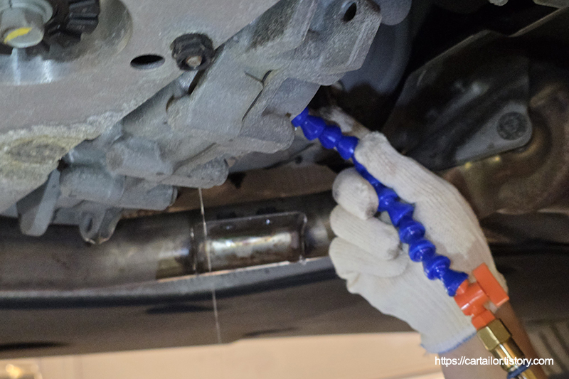트랜스퍼케이스는 별도 배출구가 없어 석션 방식으로 기존 사용유를 제거합니다.