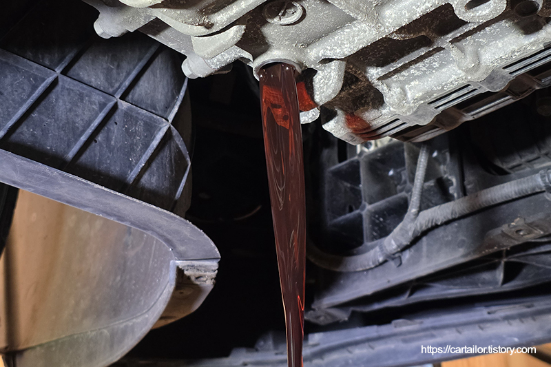 언더커버를 탈거 후, 기존 미션오일을 배출합니다.