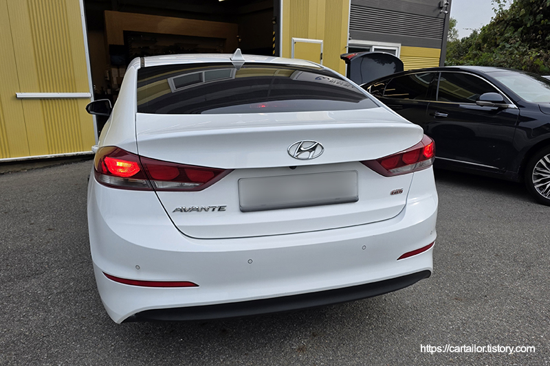 콤비네이션 램프를 상위 모델의 LED 사양으로 교체하고 할로겐 사양의 전면 주간주행등의 벌브를 합법 LED 광원으로 변경하기 위해 입고된 아반떼AD 1.6 디젤 모델입니다. 피터웍스에서 이루어지