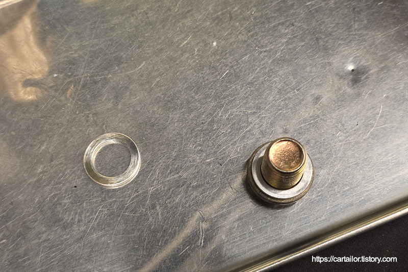 드레인이 완전히 멈췄으면 드레인볼트 와셔를 새로 걸어준 후 토크렌치로 정확하게 잠가 줍니다.