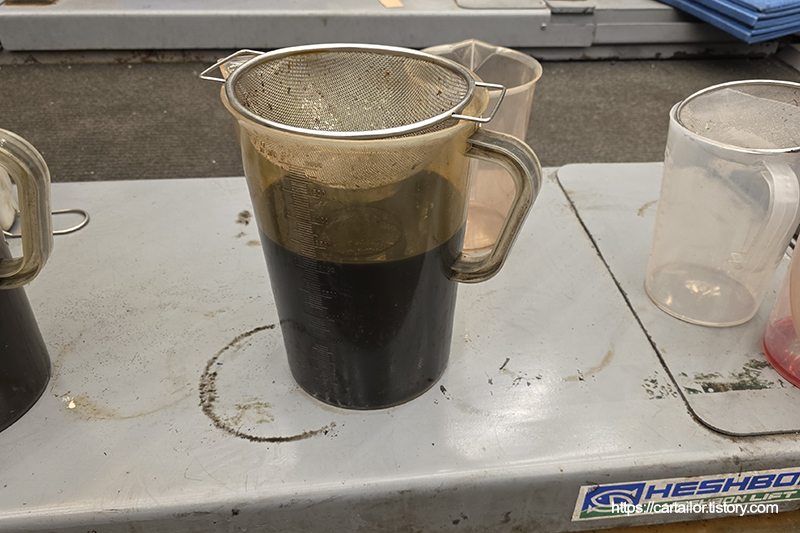 오일필터를 제거 후, 기존 사용율을 배출합니다.