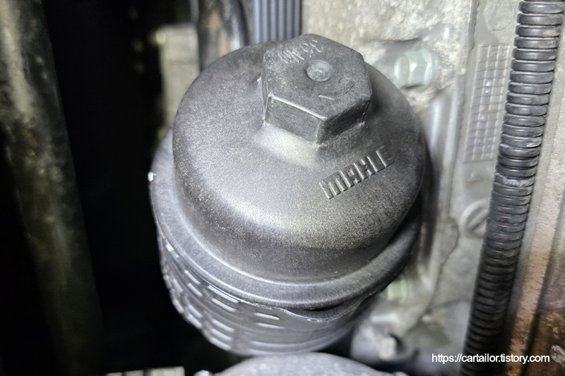 해당 차량에 맞는 신품 필터와 오일팬 고정 볼트입니다. 삽입부 씰링에 신유를 발라 장착합니다.