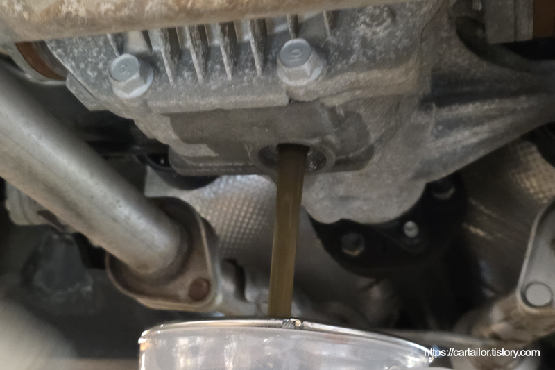 전륜과 후륜 디퍼런셜오일을 배출합니다.