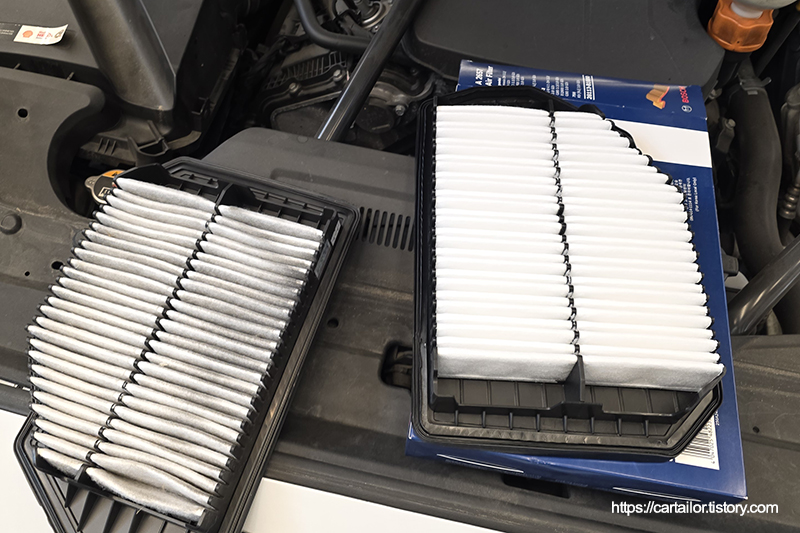 다시 시동을 걸어 작업 부위를 확인합니다. 필터, 플러그 모두 깨끗합니다.