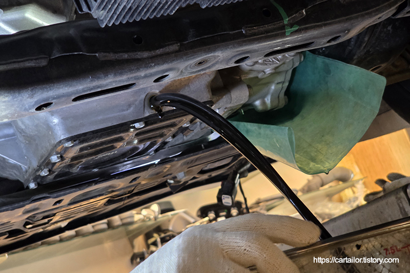 엔진오일 잔유 제거를 위해 어답터와 호스를 연결합니다.