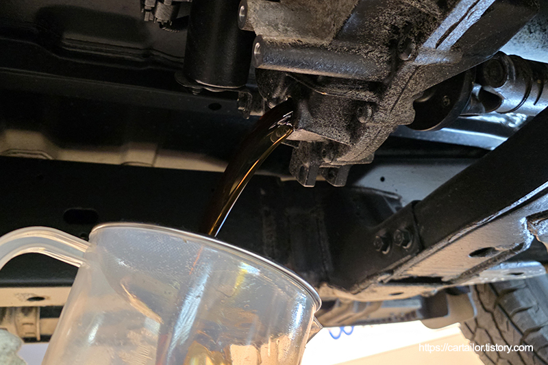 전륜과 후륜 디퍼런셜오일을 배출합니다.