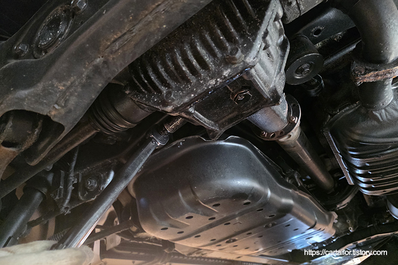 시운전을 다녀온 후 차량을 올려 하부를 확인합니다. 작업한 부위 모두 깨끗합니다.