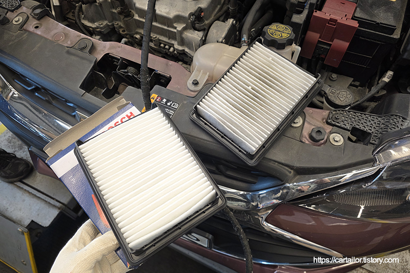 에어클리너를 신품으로 교환합니다.
